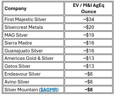 The peer average is roughly $327 per ounce, meaning $AGMR currently trades at roughly one-third of the average peer multiple.