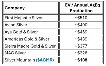 Despite its advanced stage of development and near-term production timeline, Silver Mountain Resources (TSX: AGMR | OTC: AGMRF) currently trades at a meaningful discount to other publicly traded silver companies.