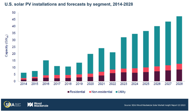 The U.S. ranks #1 on EY’s Renewable Energy Attractiveness Index, with solar capacity expected to hit 375 GW by 2028. Texas alone will lead utility-scale installations.